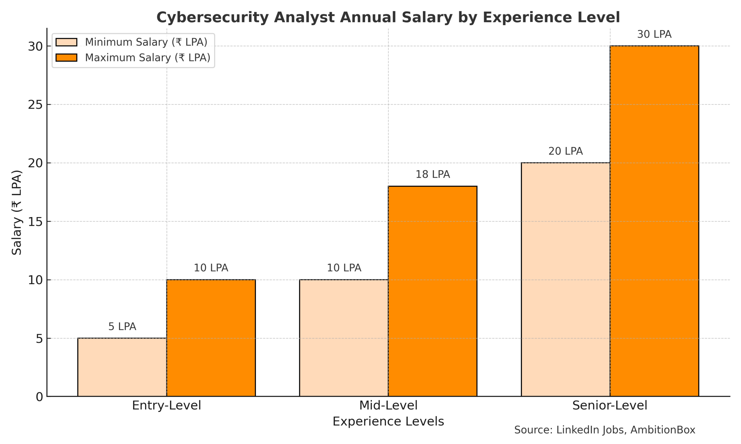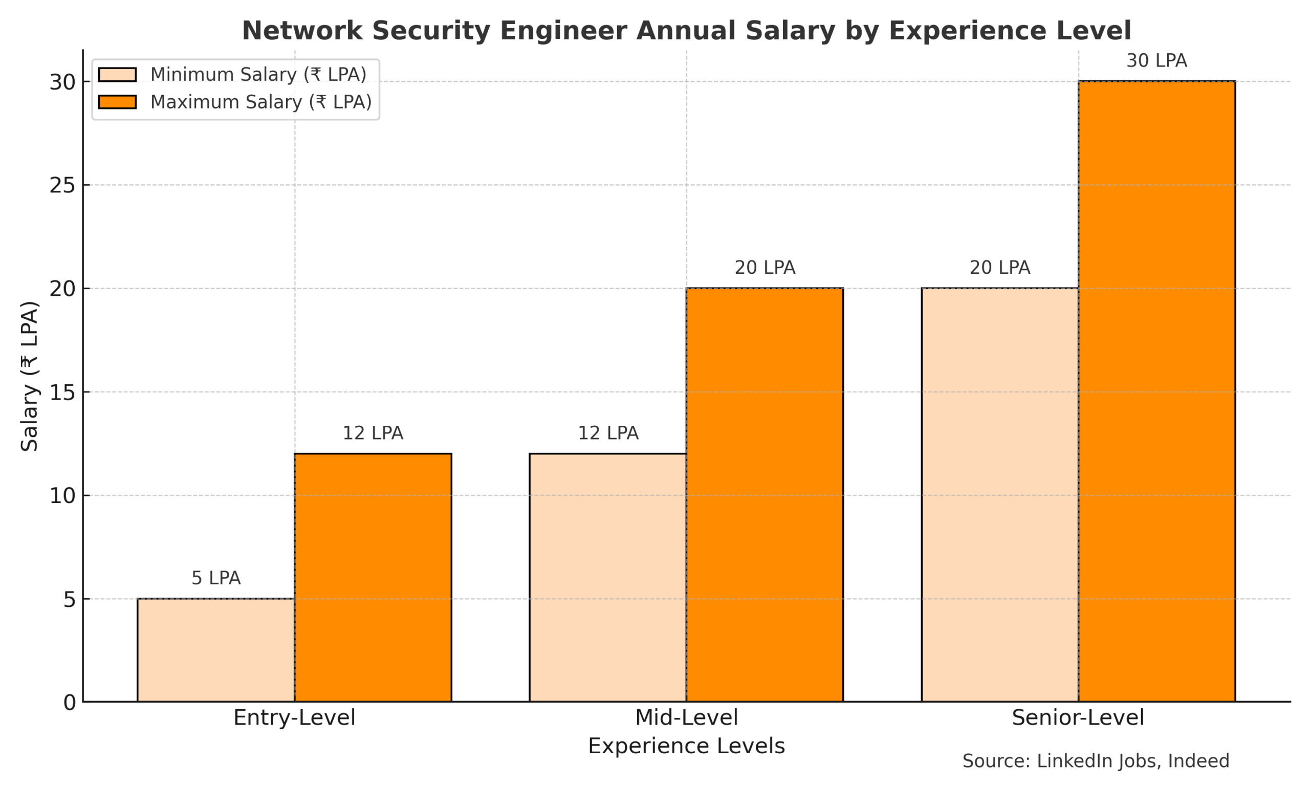 ₹5–12 LPA (Entry-Level), ₹12–20 LPA (Mid-Level), ₹20–30 LPA (Senior-Level)